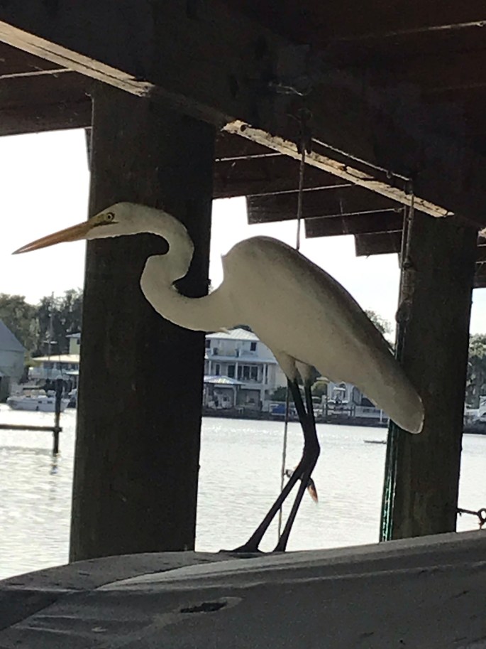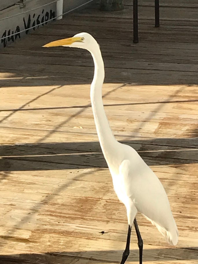Since it’s a regular occurance at KBL for fishing and thus filleting, local wildlife is always hanging around. This guy (great white heron) was getting bold. He’s about 8′ away from where Eric is filleting our catch.