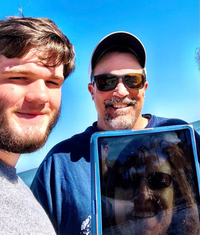 Three of us never change, we’re always in the photos. We are going to the beach no matter the temps or the weather! Sometimes we can persuade others to join us, other years we can’t. This year turned out a bit different. Something ‘world-wide’ got in the way of our plans. The walk still occurred and while I was there in spirit, bring along an iPad……………voila! I’m on the walk.