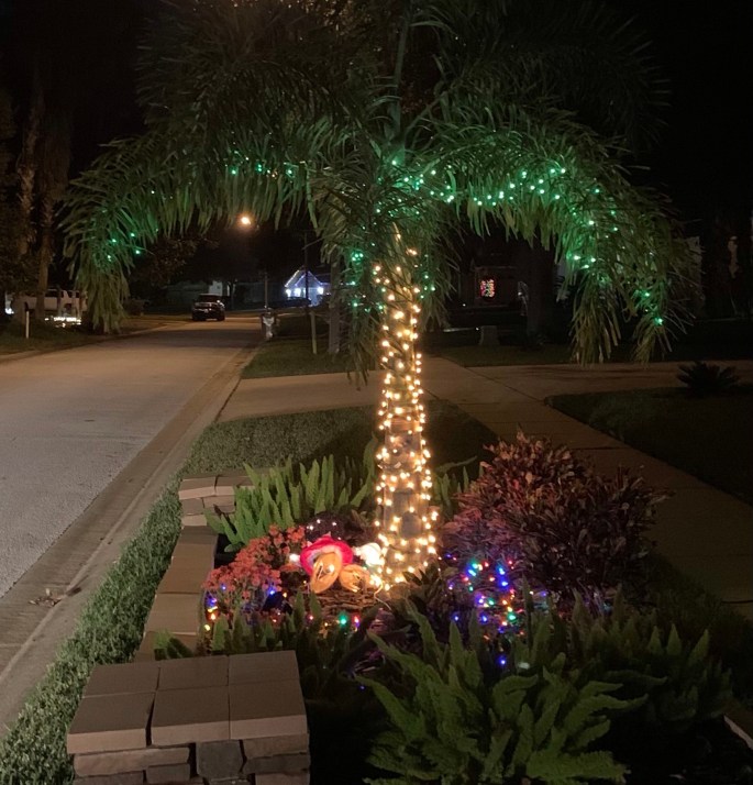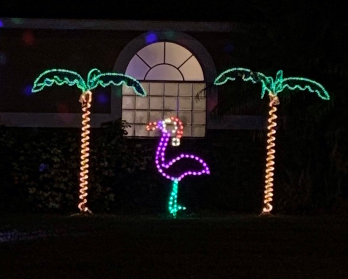 If you can step away from sugar……………….let’s talk about lights. Christmas lights. Growing up in the Midwest, we would drive around town, taking in light displays when it got close to THE date. It would be SUPER special if there was a recent snow on top of the lights – WOW! Don’t really see that in Florida, but here are a few interesting sights.