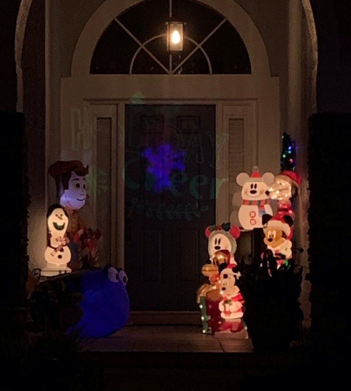 With all the rage being the blow-up yard decorations, our neighborhood did not disappoint. That is a TALL Santa – no forced perspective. It was as tall as the roof.