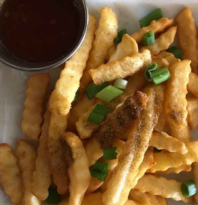 NEVER expected to order fries – but here you are. They were tossed with their signature five-spice seasoning and served with a side of sweet thai chili dipping sauce. They will be a repeat!