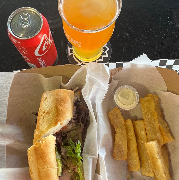 Pulled Brazilian chicken sandwich with yucca fries – Ginny