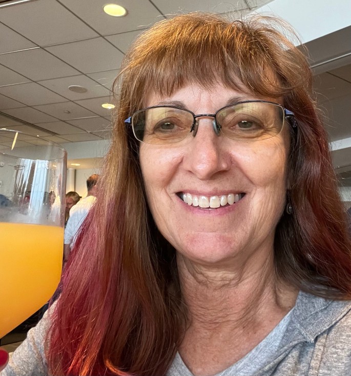 Well………………..there were supposed to be ‘highlights’ of color but since I do it so infrequently, this was what I got. It’s temporary and should wash out before going back to work. It doesn’t really meet our guidelines. The color is maroon but with the sun naturally bleaching out my hair some parts ended up more pink. Yes, very excited to be traveling again.