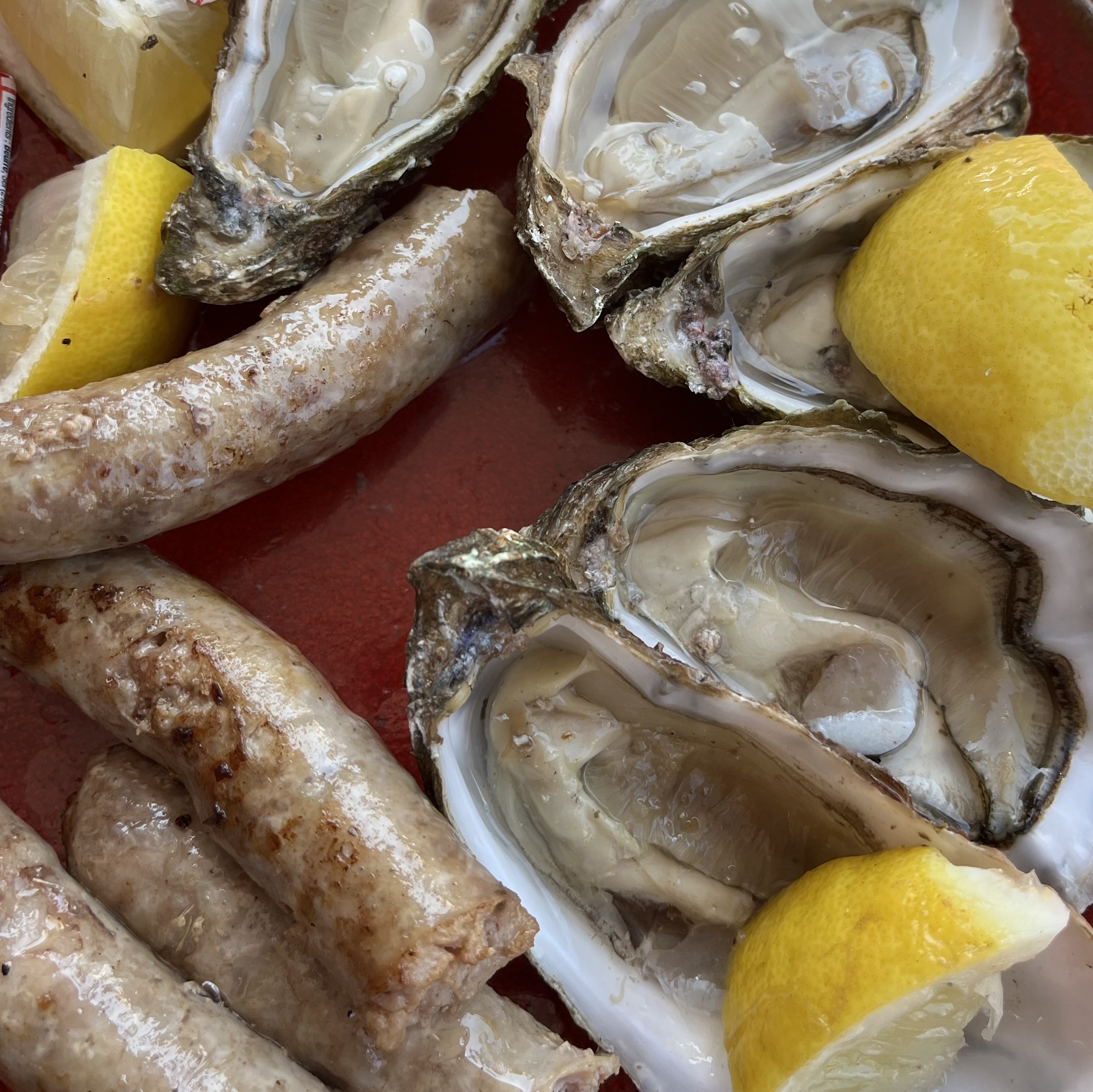 I kind of liked the sausage with the oysters. We may be trying that at home. Besides, every meal is better when you eat outside.