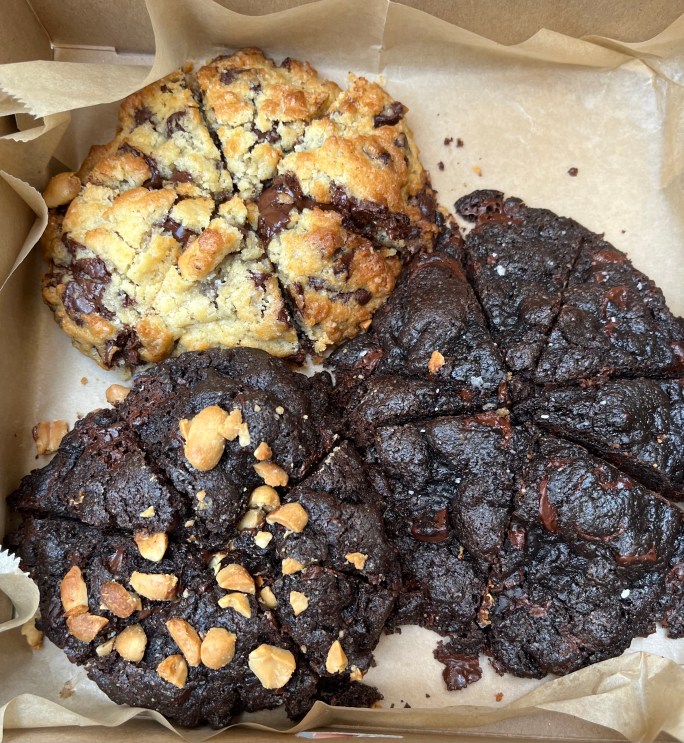 OMG these were rich. Top left was a chocolate chip cookie. Going clock-wise was double chocolate chip and the bottom left was chocolate with peanut butter. I couldn’t do it. I could not eat all three different types. I only managed two. Again………..so rich!