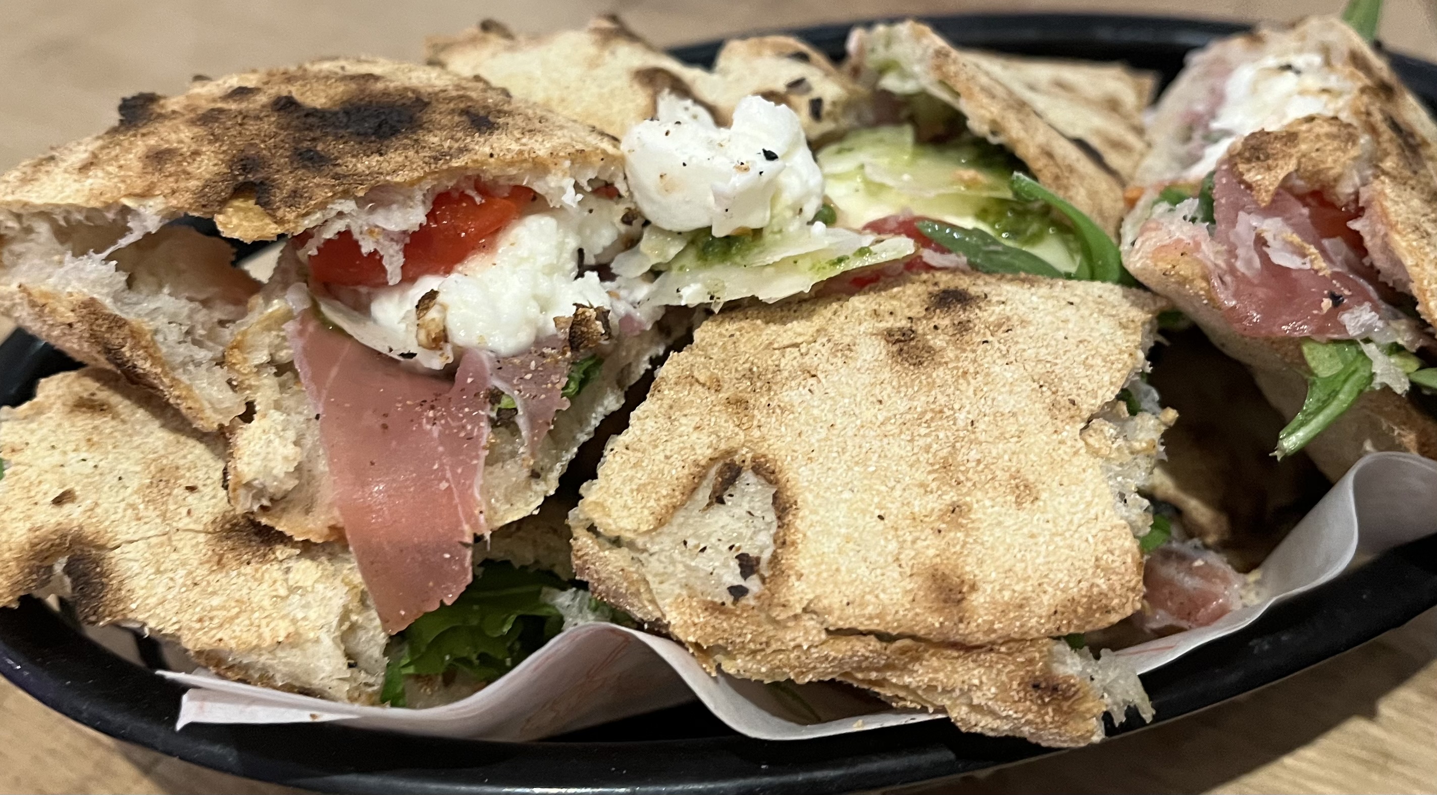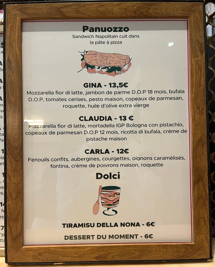 They had these interesting pizza sandwiches. We tasted the Gina and the Claudia. We agreed we preferred the Claudia.