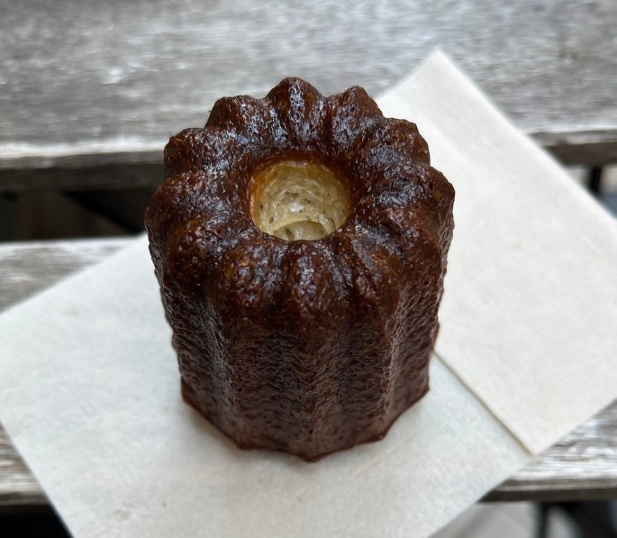 The canneles are a Bordeaux specialty with the name coming from the French word for ‘wavey’ or ‘fluted’ as they are made in copper fluted molds. The mold encouarges the batter to caramelize on the outside, and stay soft on the inside with a taste similar to a creme brulee.