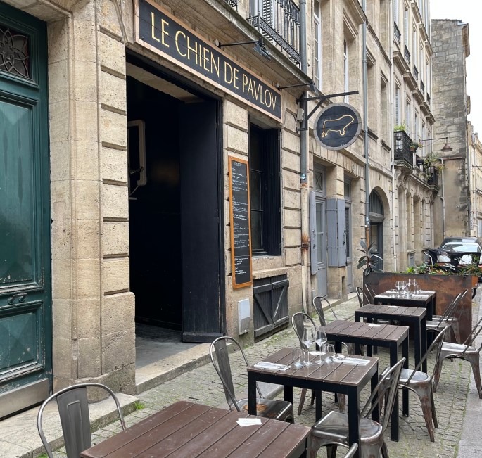The first was at Le Chien de Pavlov. A MIchelon chef wanted to open another restaurant where he had more options and less rules with the chance to serve a wider population. The result was this location. This day it was overcast and spitting rain so we ultimately ate inside.