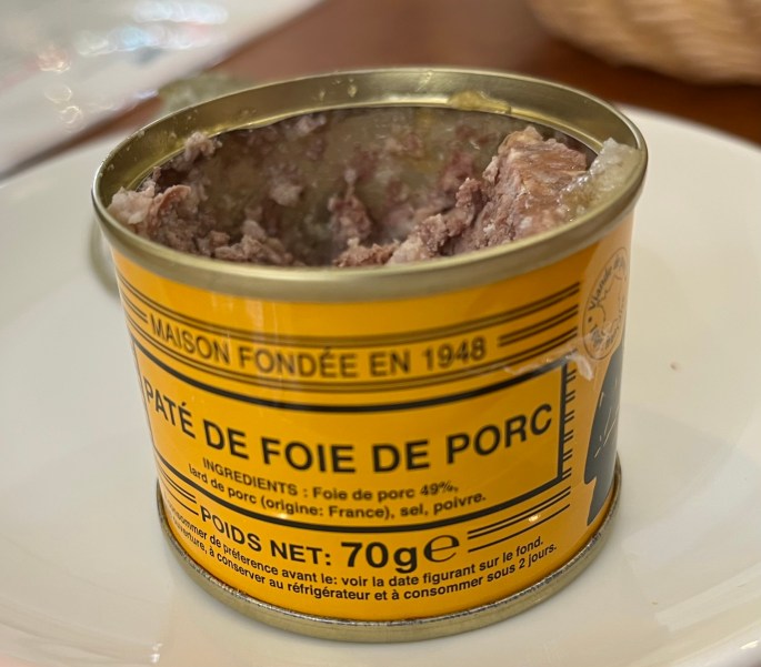 It was located on Rue St. Remy – just a few blocks from our apartment. Instead of butter with your bread, a small tin of this arrived. Got to love the French.