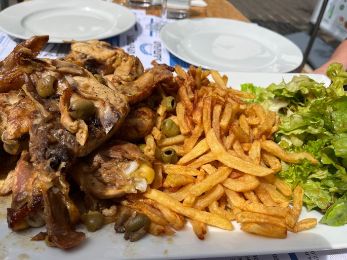 OMG – best decision ever coming back to this place. I mentioned in an earlier post about some of the best chicken I had tasted? This topped that. We ultimately ordered the chicken for four (okay, I know, there’s only three or us) which had two sides (frites and salad) that was a better price than ordering three meals. Sold.