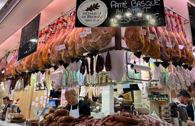 Then we saw the meats, and the Iberian ham – so expensive. Those piggies were fed a diet of acorns.