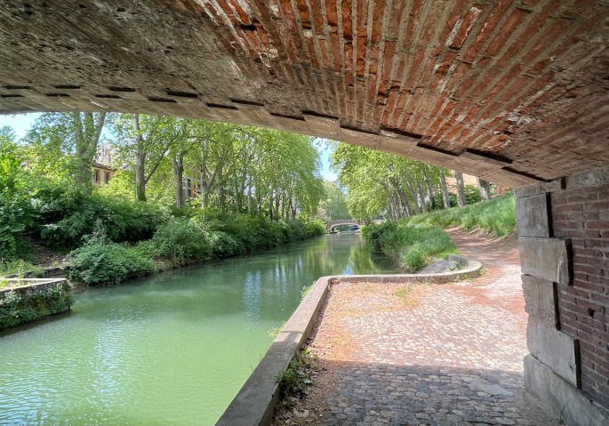 We walked the entire mile length (we definitely needed it!) walking under several bridges like this. Our pathway originally was the towpath for animals to pull the boats.