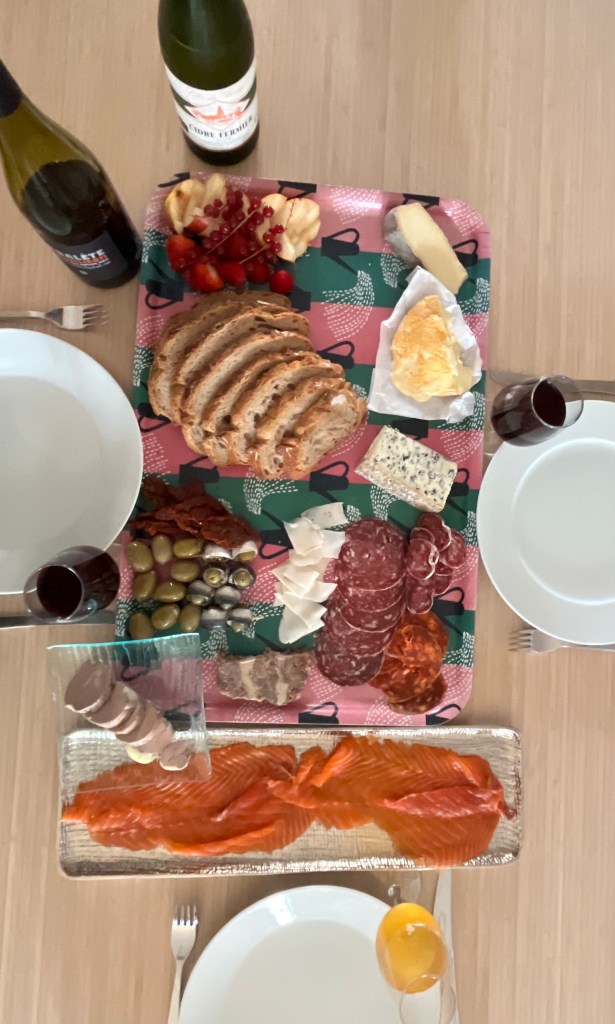 Didn’t want anyone to think we were letting Eric off the hook during our time in Toulouse. This spread was complements of our shopping at the Victor Hugo market. It was quite the feast: fresh fruit, olives, (some were stuffed), pate’, dried tomatoes, cheeses (3), lardo, dried meat (3) and smoked salmon. Oh and some bread and wine (I had cider for a change of pace).