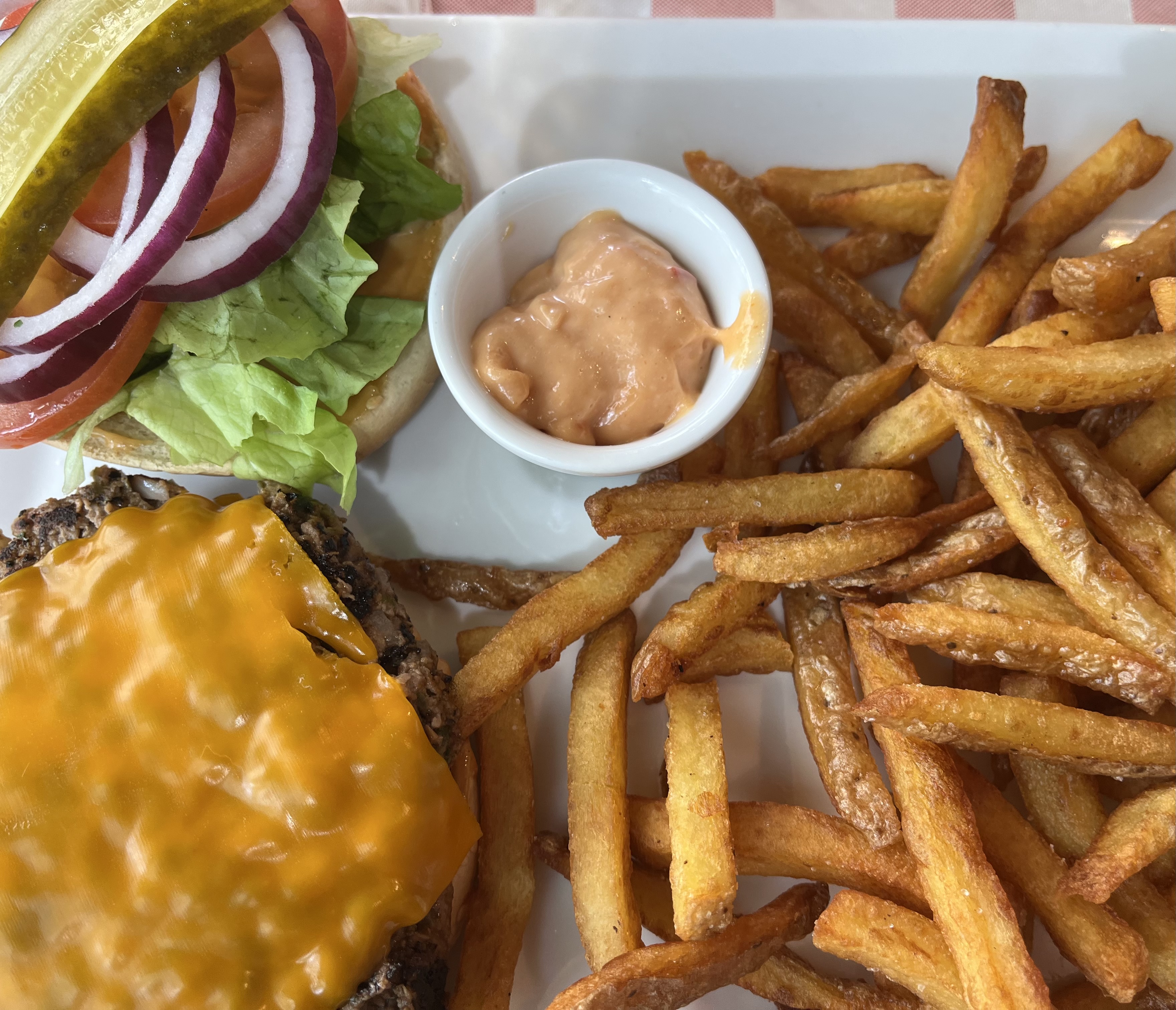 I was in the mood for a burger, Adrienne got the local white fish with Eric’s selection being lamb.