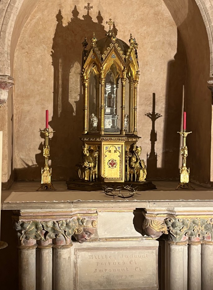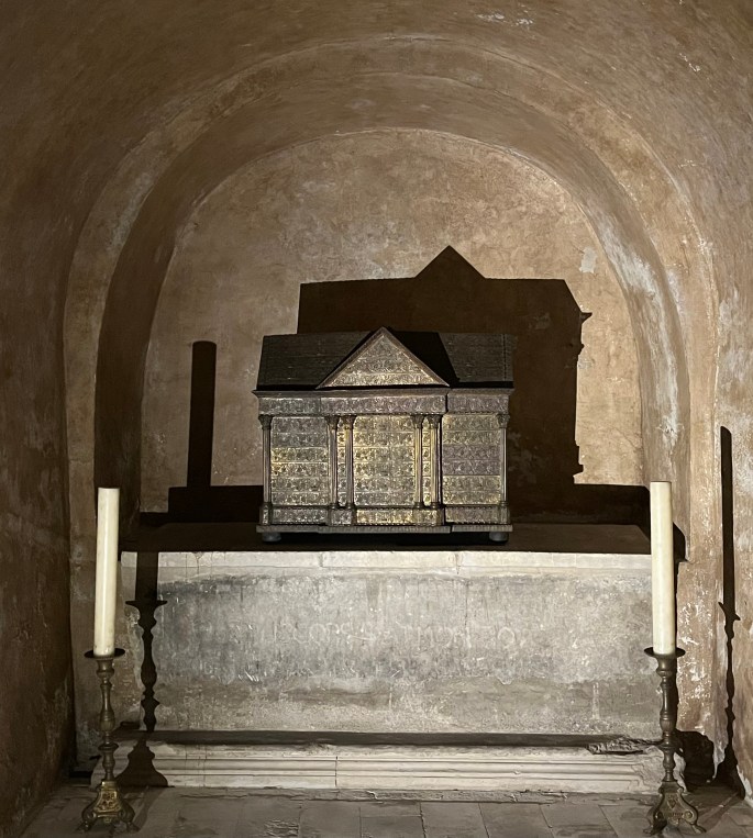 There was an upper crypt and a lower crypt containing shrines of several apostles and saints.