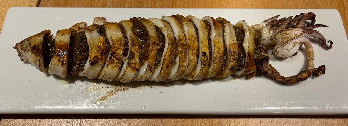 Vegetable stuffed squid. Yep I tried it. They enjoyed the remainder.