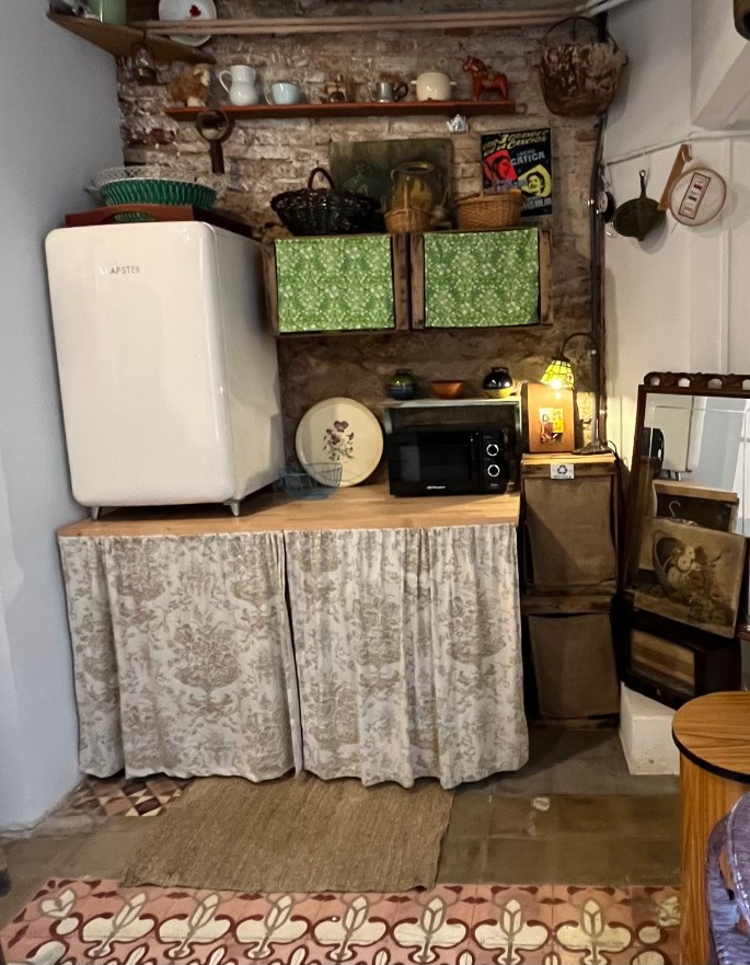 A short taxi ride and we were at our last AirBNB for this trip, located in the Gracia region of Barcelona. Dare I say BEST AirBNB ever? We only met the owner a few minutes to handover the keys and do a quick walk. We didn’t have any full-blown meals at the kitchen table but there was plenty of room. Loved the bench seat along the wall.