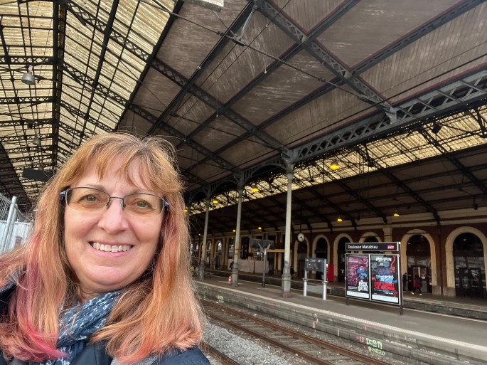 The taxi dropped us off, we grabbed some coffee and croissants and then this happened. A gentleman said something to us in French, we obviously didn’t understand and then he said ‘get out’. Huh? Looking around, others were getting their bags, throwing away their purchases and heading outside of the station.