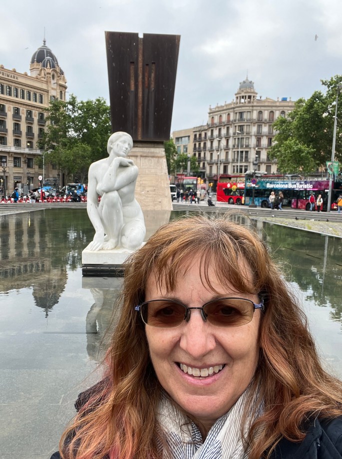 One last photo of the square with a reflection pond and different sculptures at opposite ends. All those buses in the background…………the start of Le Ramblas.