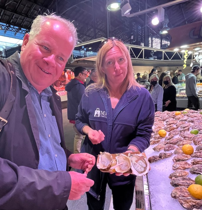 Of course, Eric and Adrienne drifted to the oyster vendor. Those were some B>I>G oysters. I tried one and it was really, really hard to get down – just saying. Another species was much smaller, very salty and much more to my liking.