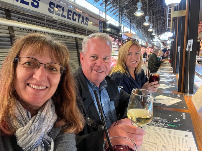 Like many places in Spain, this was about tapas – or small plates. Seating was along the outside of the booth with all of the cooking in the middle. We made some fabulous choices.