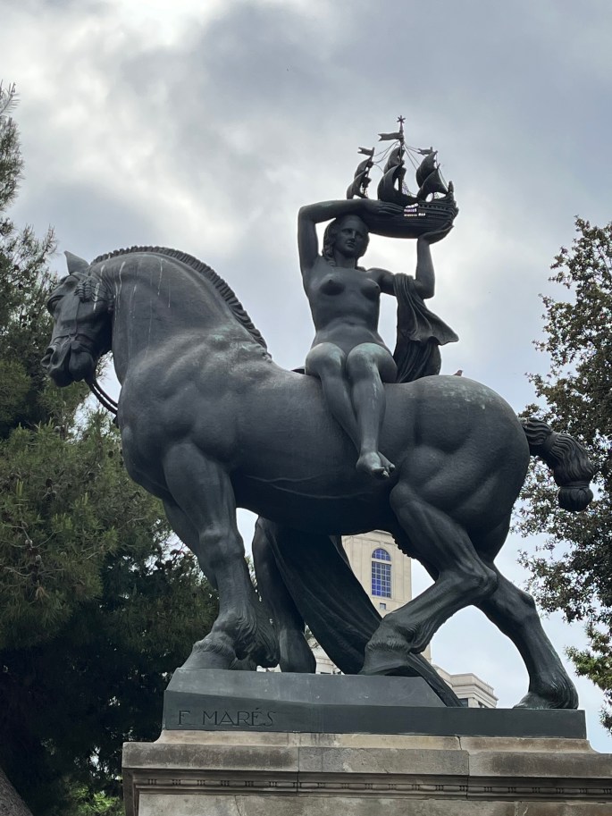 We continued walking down the street, coming upon Placa de Catalunya, a large square in central Barcelona generally considered to be the city center and the place where the old city and the 19th century-built Eixample neighborhood converge. LOTS of statuses but pared it down to these few shots.