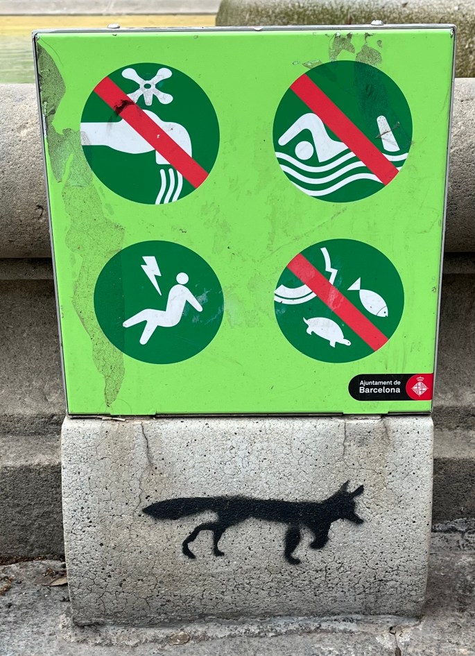 We also usually found these signs near the fountains. The fox? Someone added their own piece of artwork to the base. BTW – don’t dump your fish here!