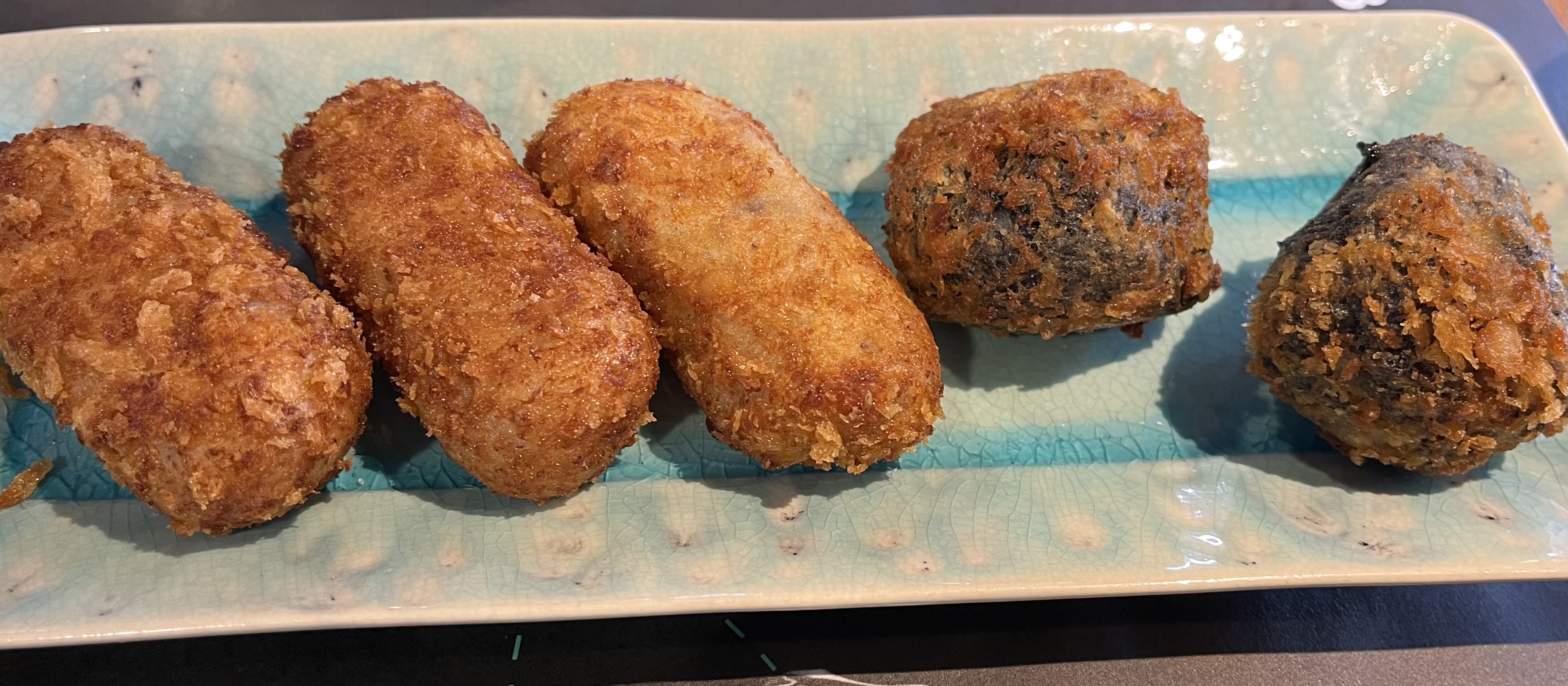 Other choices were potatoes bravos and various croquettes. Croquettes were never something that I would normally order, but they seem to be popular, and we’ve tried different fillings. I’m sold.