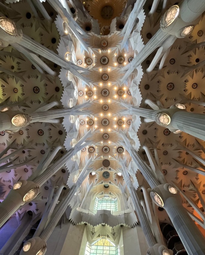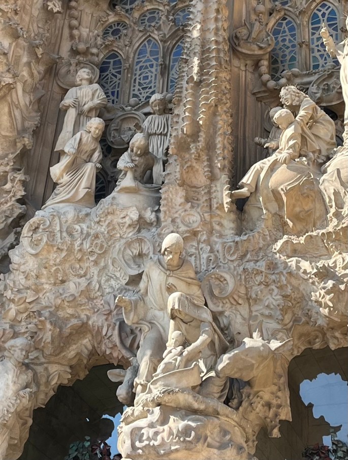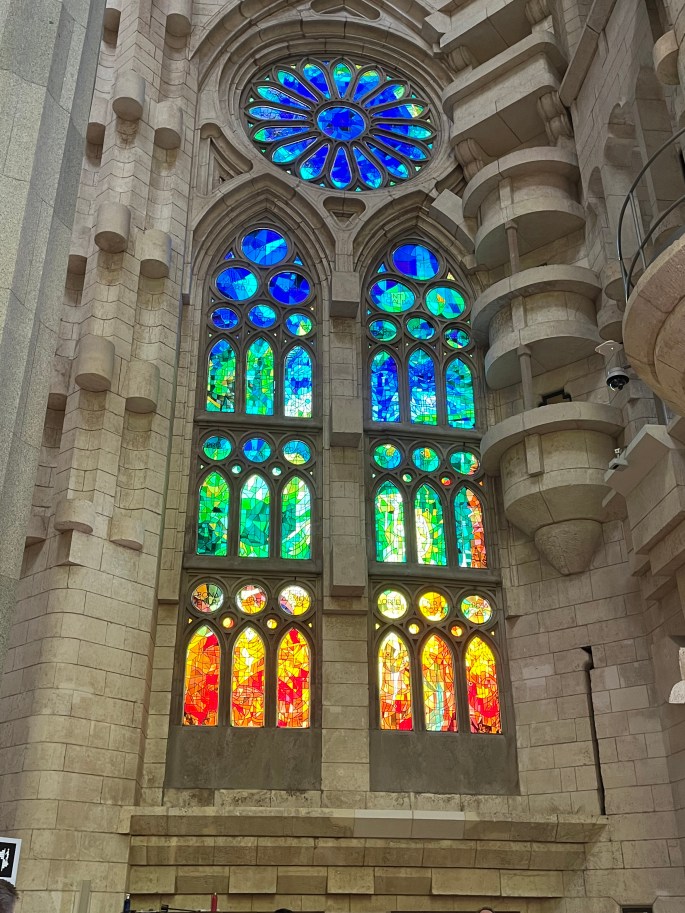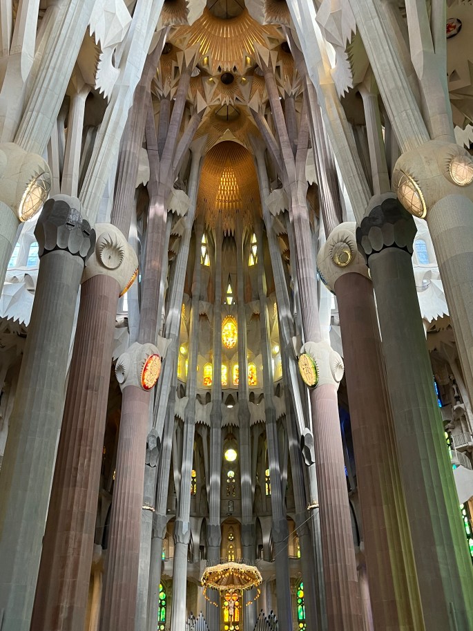 Whew! That was definitely a mouthful to say………….or just call it Sagrada Familia like most do. It is the largest, unfinished Roman Catholic church and ‘related’ to other buildings in Barcelona. One of my first Barcelona blog posts mentioned a gentleman named Gaudi. This was his largest and most involved project – and it’s not done – yet.