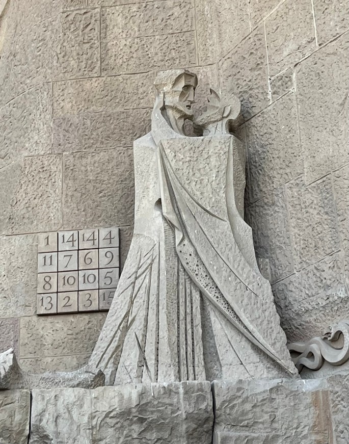 One of the things I read about included the ‘magic square’ seen behind the sculpture below. The rows, the columns or diagonal lines have sums all adding up to 33 – the age of Jesus at his death.