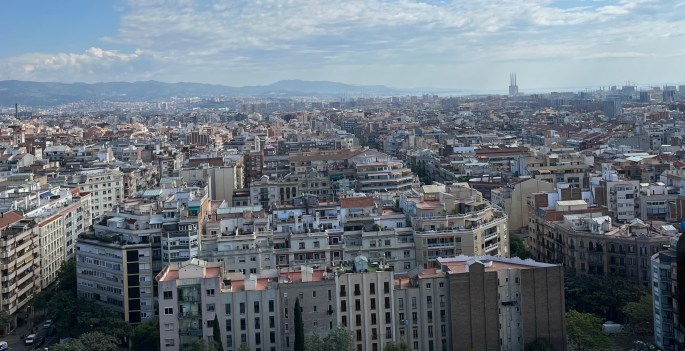 Adrienne was there also, but somehow, I missed a shot with all of us. Being up this high gave me chance for an overarching view of the Barcelona skyline.