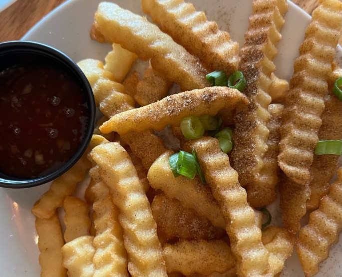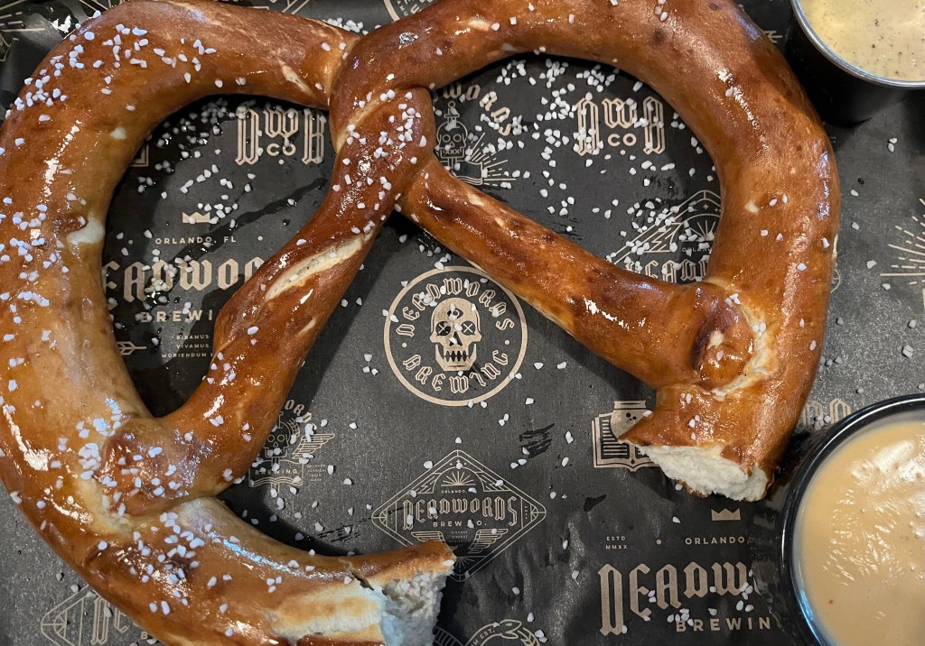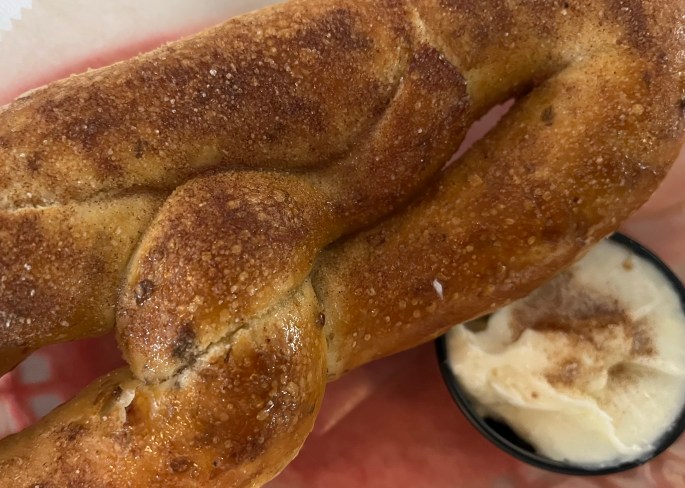 We’ve had a few different dessert items but none that bore a repeat. However, fairly close by is a dessert pretzel, at Ten10 Brewing Company. So what exactly is a dessert pretzel? Think warm chewy pretzel, coated with cinnamon sugar and having a tub of cream cheese icing nearby – love it!!!!