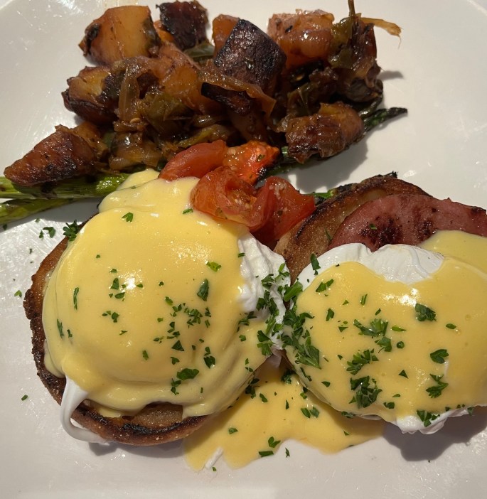 Between the three of us, we chose very different entrees. I had been craving eggs benedict and they had their own ‘market’ version. Loved it! Except for the breakfast potatoes left on the plate, everything else was gone.