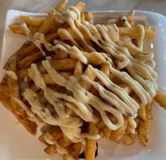 We started with the ‘zazzy’ fries from the Indian restaurant. Mm, mm, good. Loved the salty & spicy coating and remoulade.