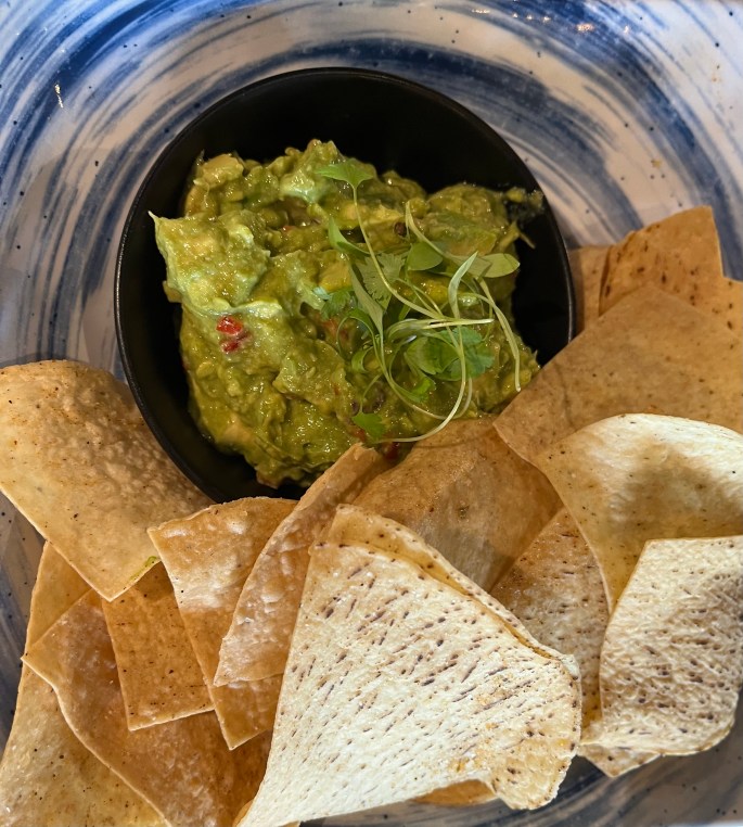 We added their guacamole and homemade chips before the main dishes arrived. We all agreed the flavor was unique (quite good!) so much so that Eric went to it’s kitchen and asked their chef. Honey vinegarette was the ingredient that ‘made’ the dish interesting.