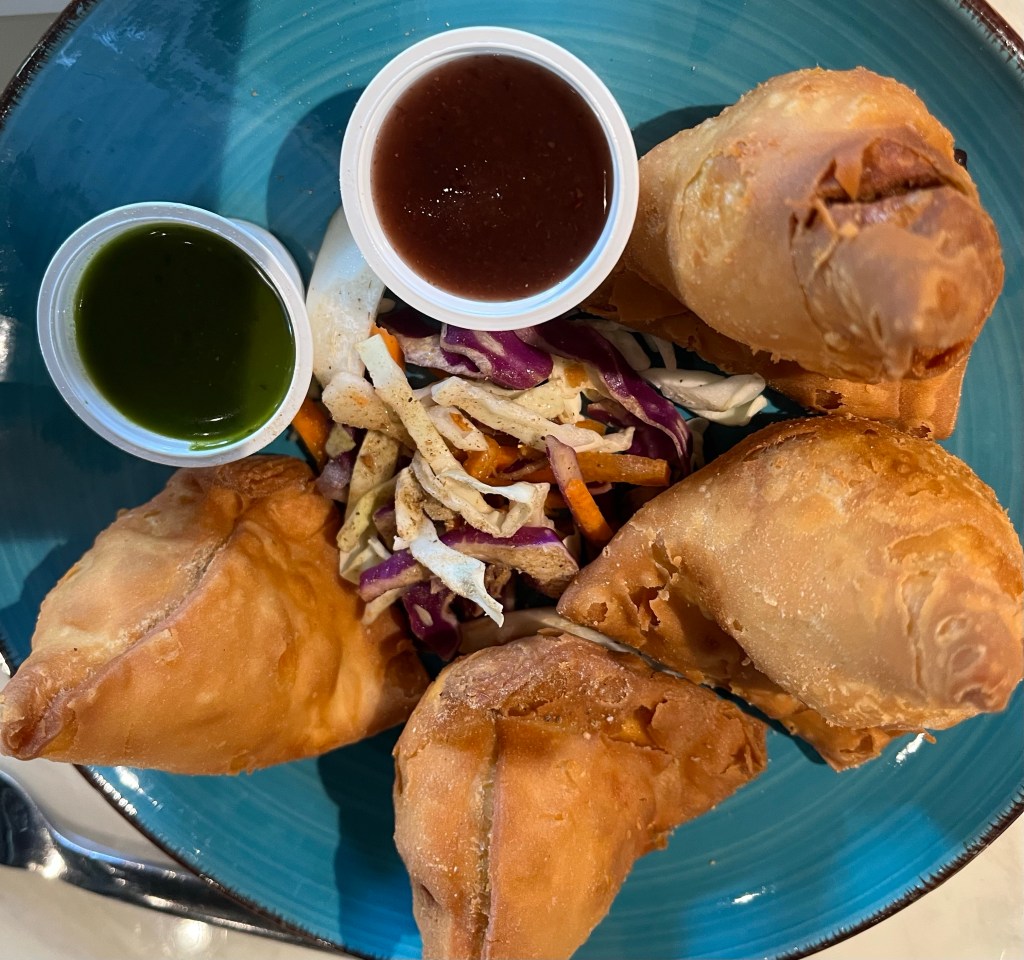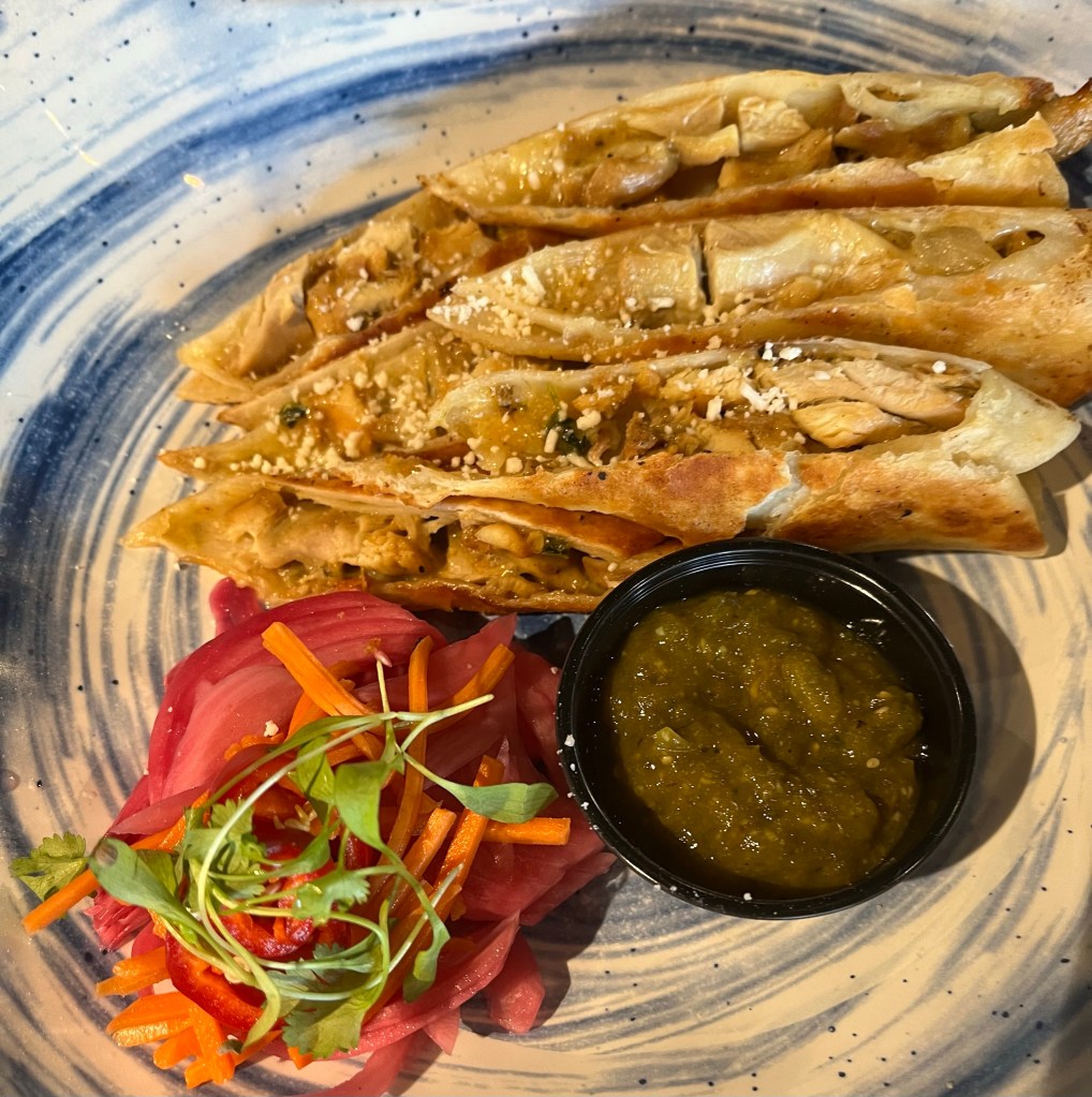 Eric ordered two more appetizers, samosas and a chicken quesadilla.