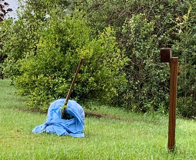 One of the funnier things I saw…………this wrapped tree in my neighbor’s yard. Really? We’re expecting rain and wind, not cold temps.