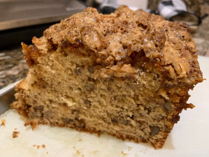 Not to be outdone, I baked some Toffee banana bread to satisfy my sweet tooth – very tasty.