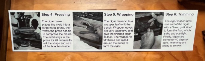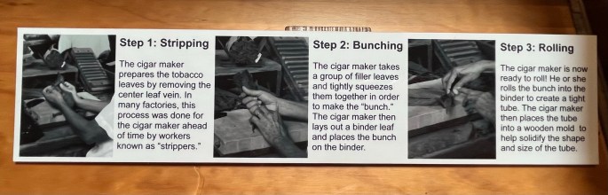 While not a huge state park, mainly encompassing half a city block, their exhibits are extremely informative. Let’s start with the obvious, cigar making. Here are a few shots from one of their exhibits.