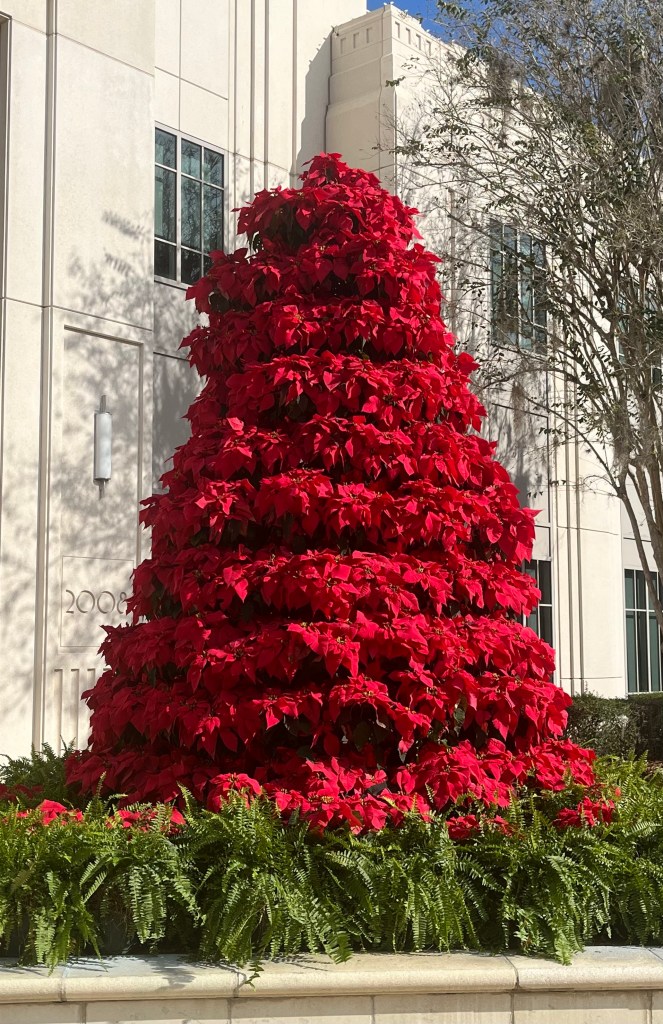 Midwest Christmas traditions are much different than Florida traditions, but we all adjust and create new ones based on our environment. Did not see poinsettia towers when I was growing up, but they are fairly common in Central Florida.