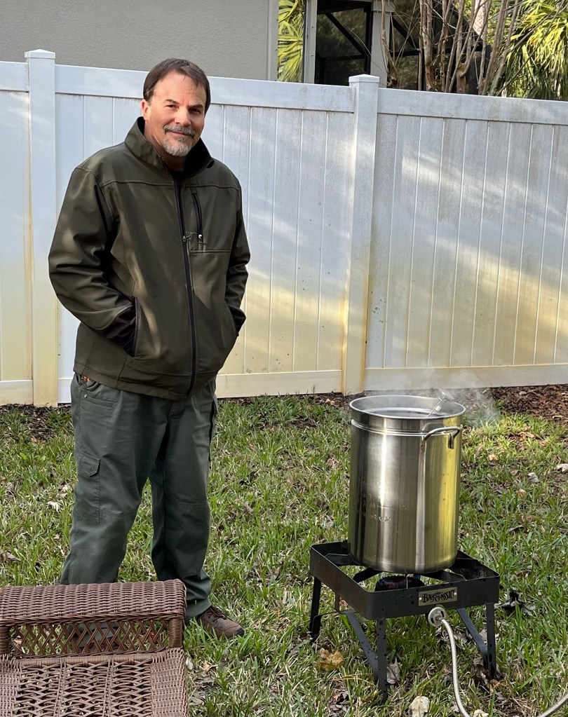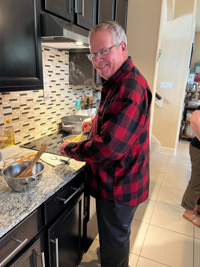 Eric was engaged for the inside cooking – turkey gravy and mashed potatoes. His secret for the mashed potatoes……lots of butter.