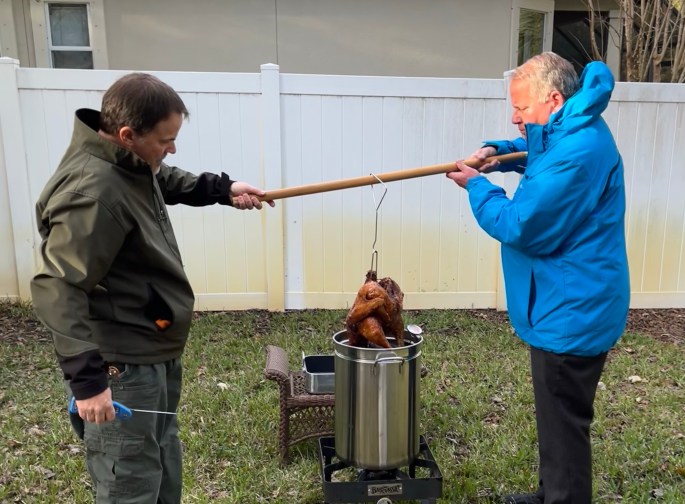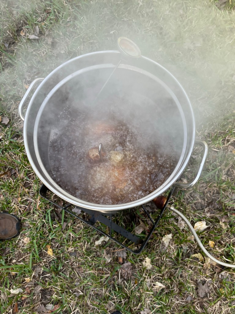 For a number of years, Rich has fried a turkey. It is a process! Cooking was a bit harder due to the cold temps outside. It took forever for the oil to get up to temperature.