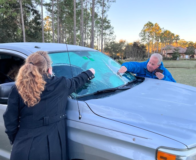 Remember how I started saying we were going to the frigid North? Yep, the morning departure made sure we were aware. That’s frost on the window. Had to get the Florida ice-scraper out (credit card!).