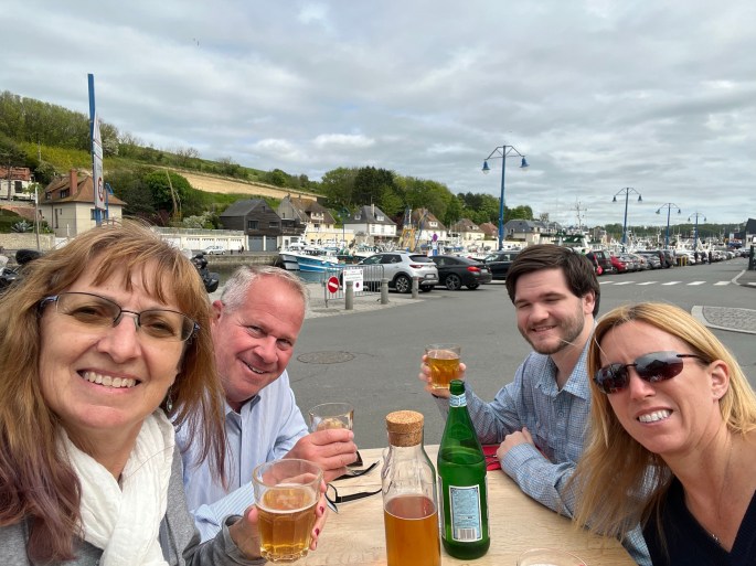 First order of business – lunch, Normandy style. walking along the waterfront, this was our pick, starting with cidre – a specialty in this region with all the pommes (apples) grown here.