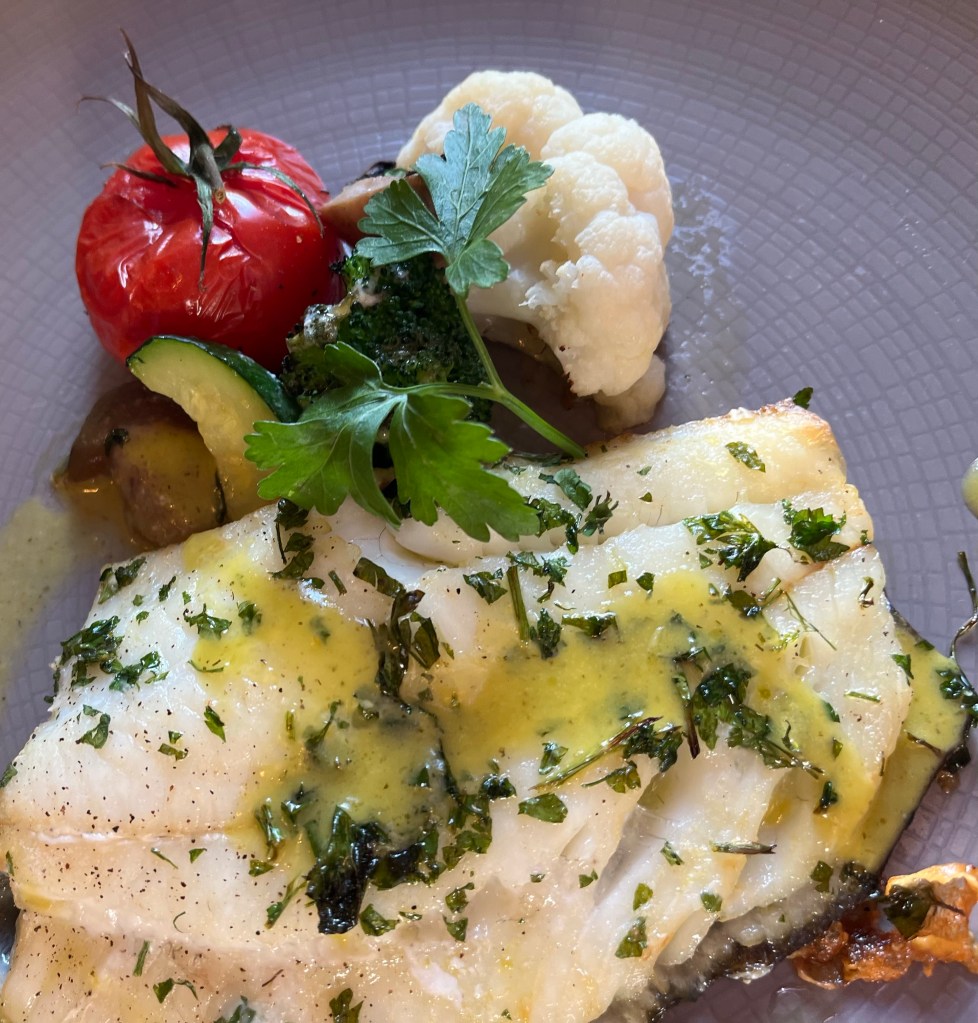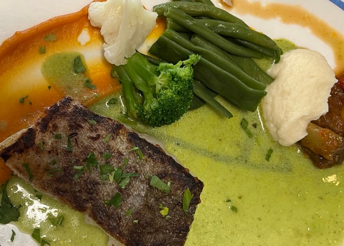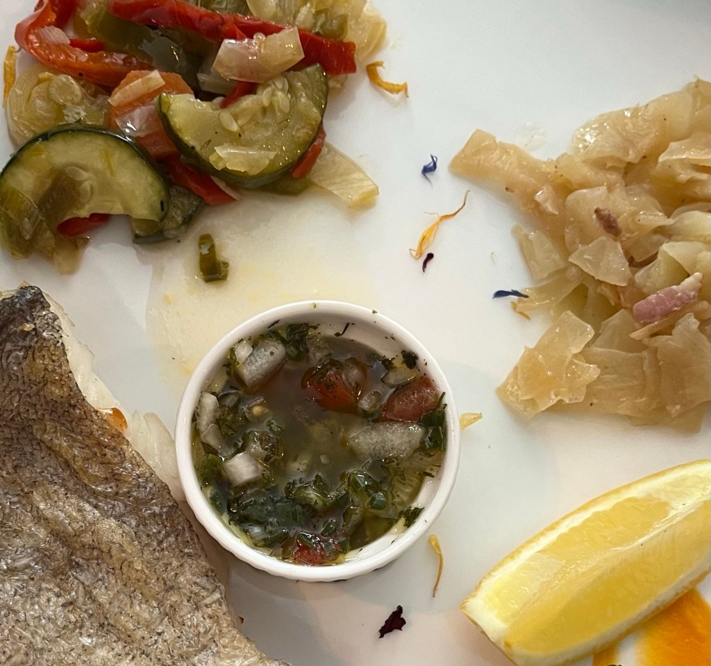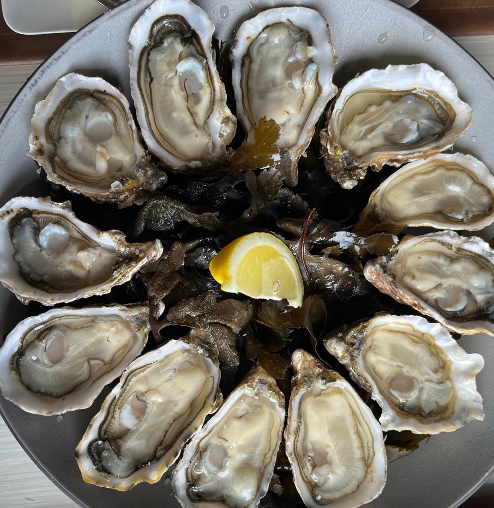 No surprise, oysters were part of this meal and OMG! Perfect size for me (small), nice texture, super salty and could also be topped with lemon or mignonette. ‘Ginny-size’ was on the left. These oysters may have spoiled me for all other bi-valves. YES, they were that good.