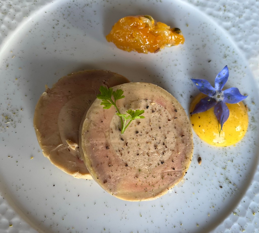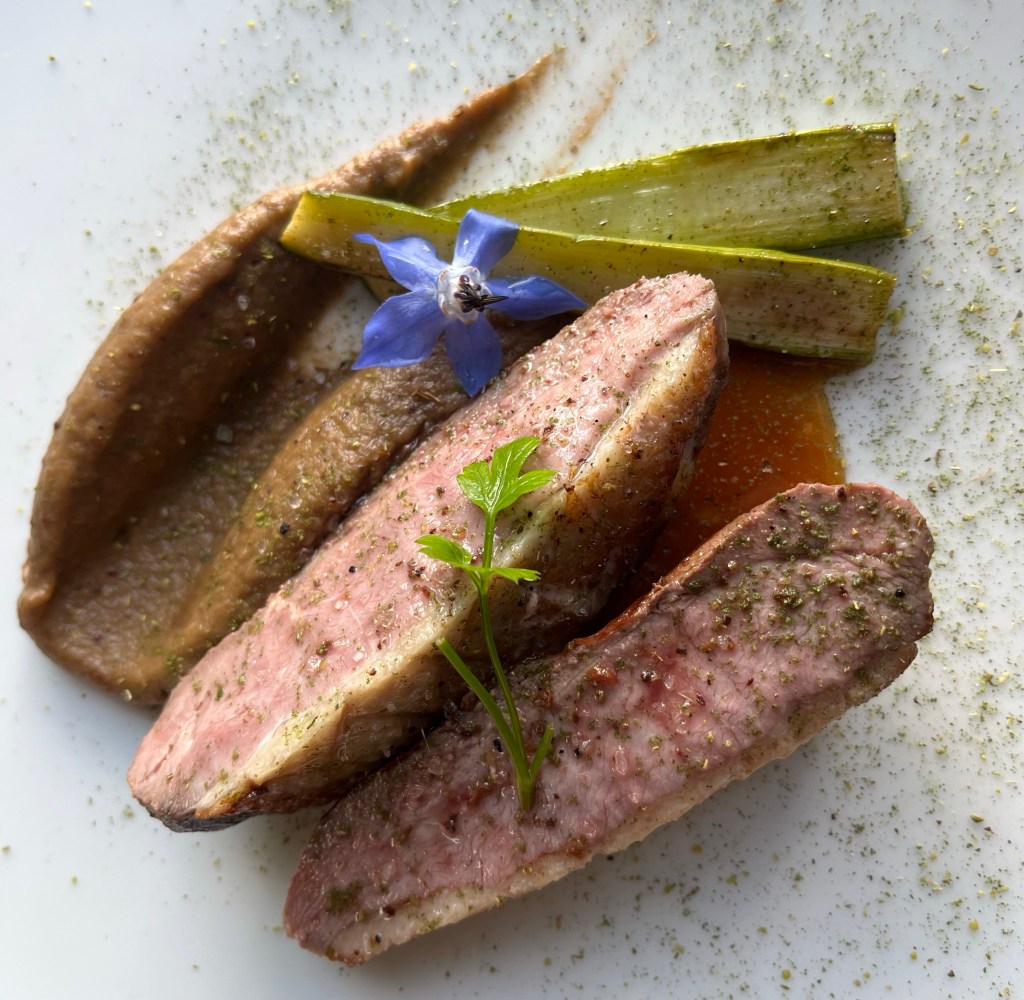 Eric enjoyed his choice of Fois gras and we all loved the bread. Might have been several baskets (or more) brought to the table. The little lavender flowers were also edible.