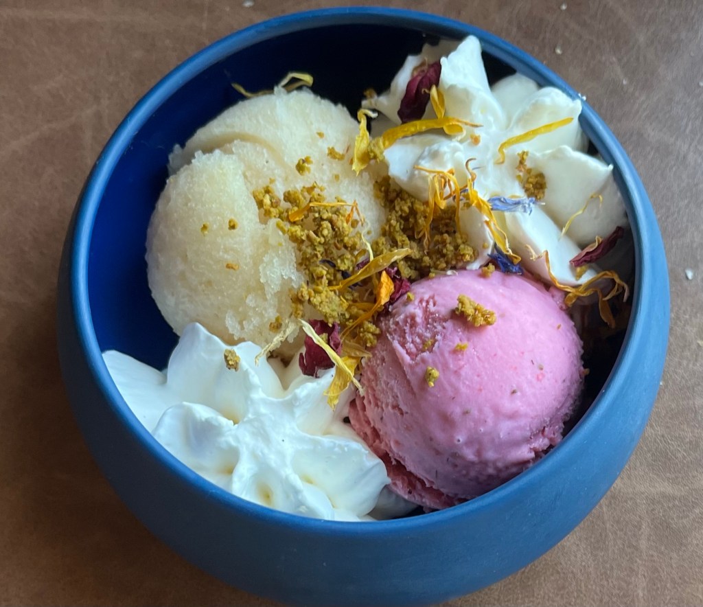 Then came the desserts – another true winner. Three sweet selections chosen to end the meal: Puff pastries, sorbet (passion fruit and strawberry) and chocolate molten-lava cake.