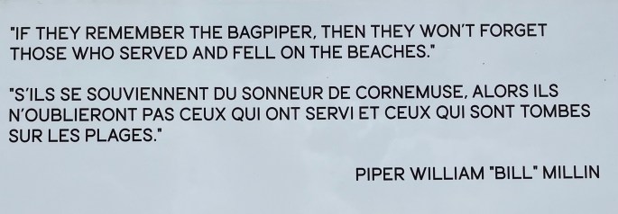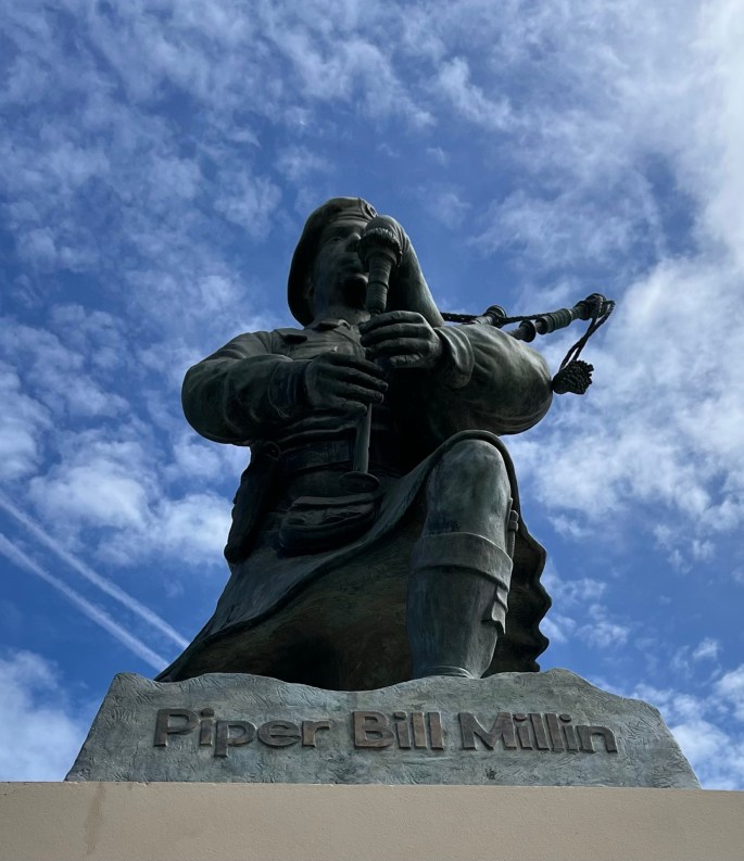 The British and Canadiens were able to link up the following day and continue the drive to Caen. At this site was a sculpture of a bagpiper.