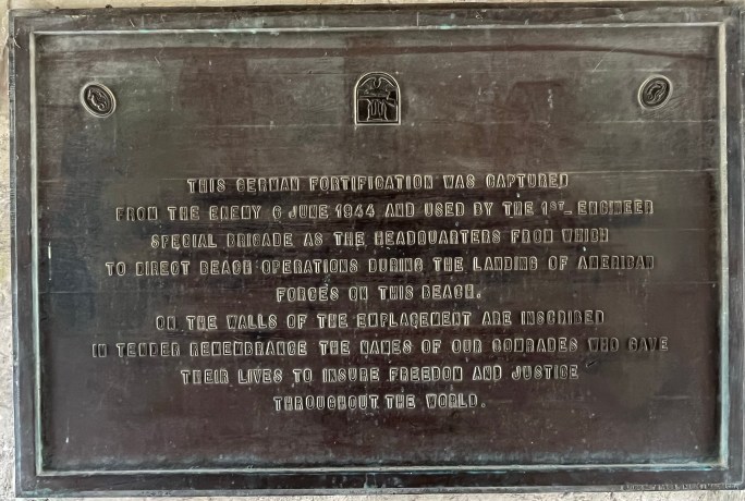 On the bluff was a memorial to the Big Red One infantryman as they encountered beach obstacles and fierce enemy fire which stopped their advance at the water’s edge.