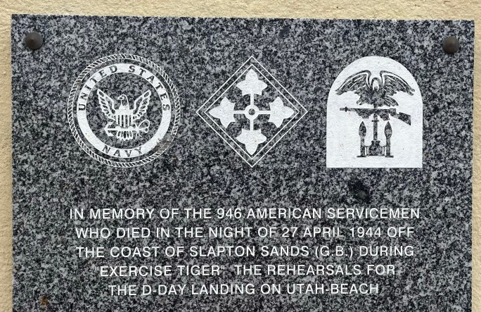Interesting enough, we also came across this plaque in the same area. It was one of a series of large-scale rehearsals for the D-Day invasion. Because of the impending invasion of Normandy, the incident was under the strictest secrecy at the time and only minimally reported afterwards.